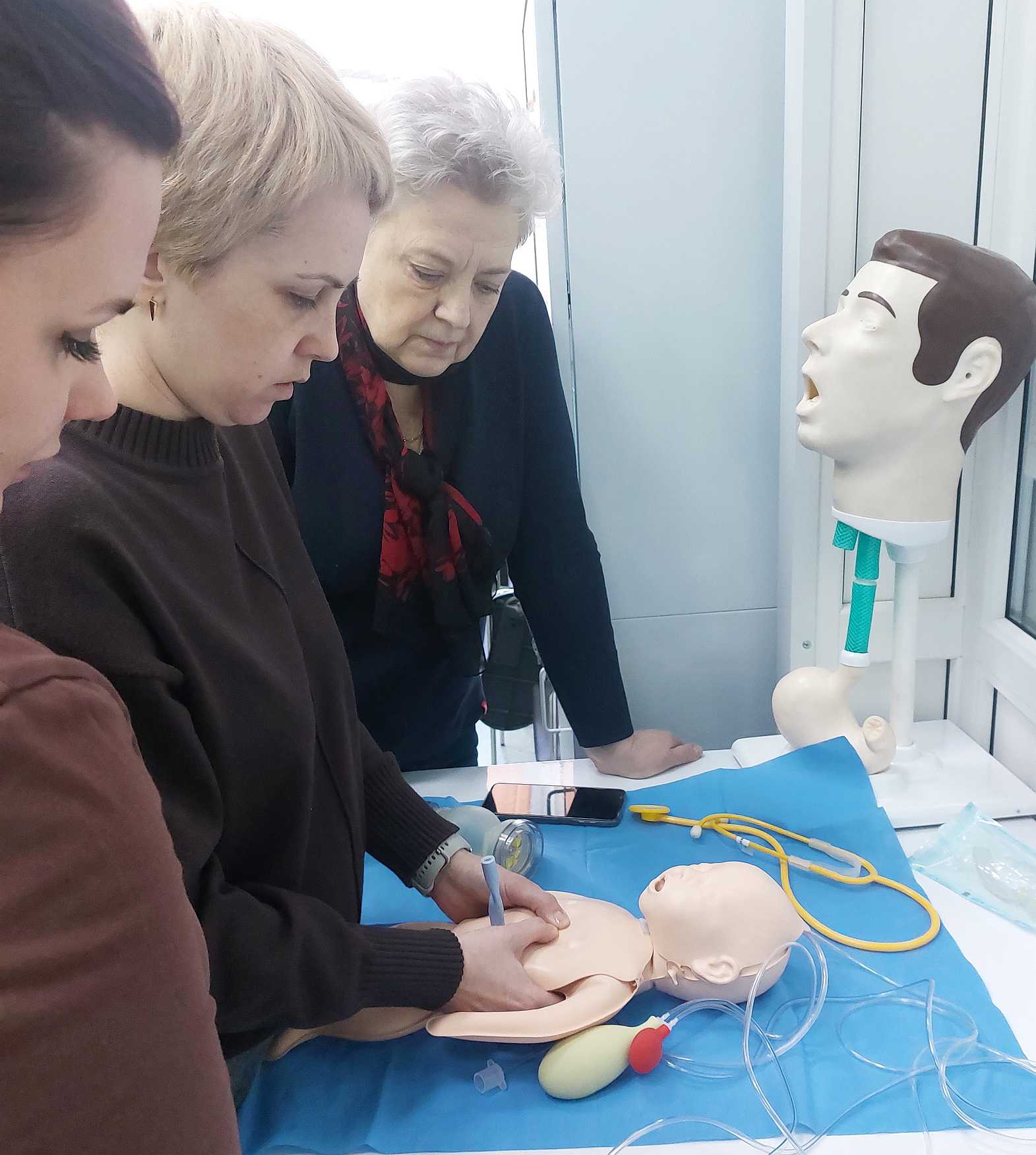 Тренинг по сердечно-легочной реанимации, по оказанию неотложной медицинской помощи при гипертоническом кризе, гиповолемическом и анафилактическом шоке.