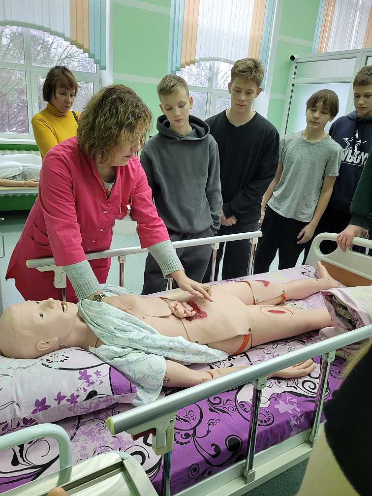Заведующий лабораторией по отработке навыков Александра Котович провела экскурсию по лаборатории. Учащиеся смогли выполнить некоторые медицинские манипуляции.