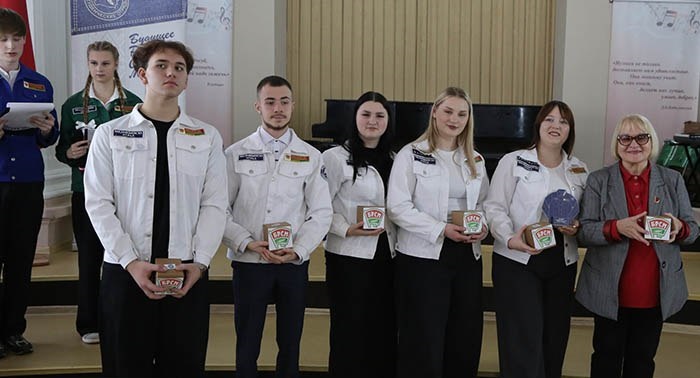 Грамоты учащимся, активно принимавшим участие в культурно-массовой работе, а также отличившимся в студенческих отрядах в 3-м трудовом семестре, вручила председатель первичной профсоюзной организации учащихся Макей Анна Иосифовна.