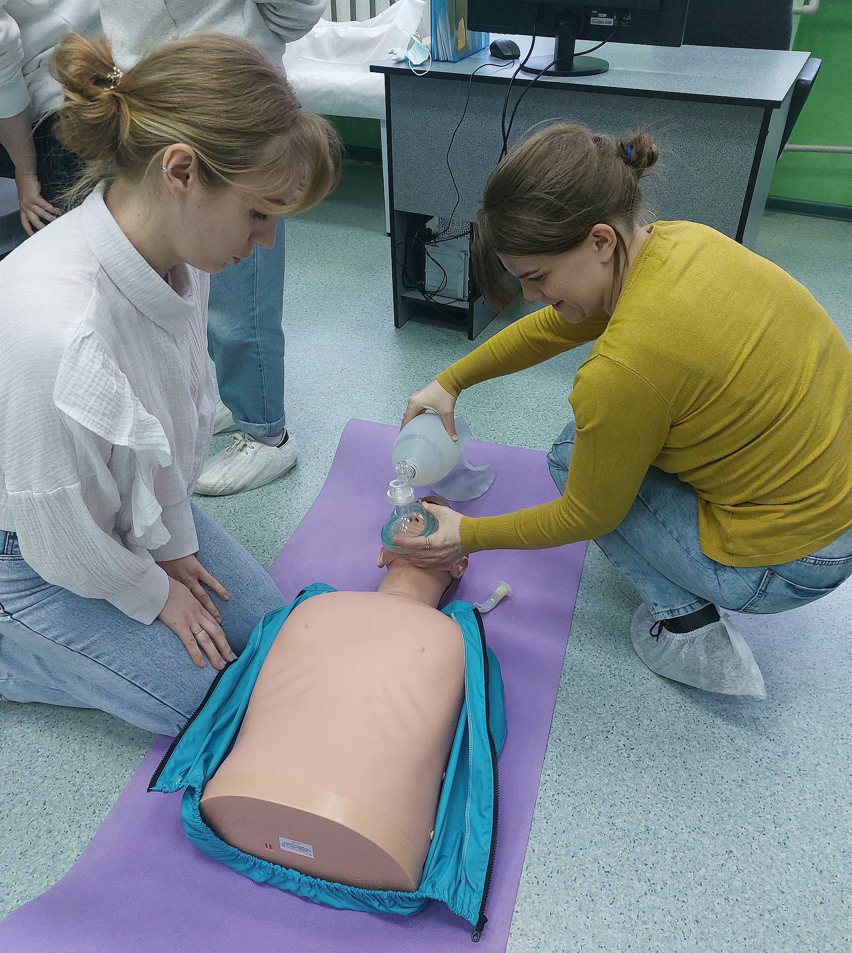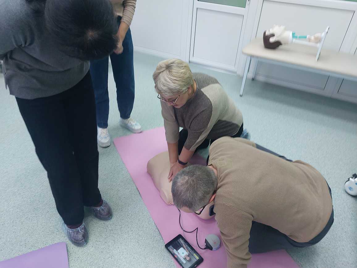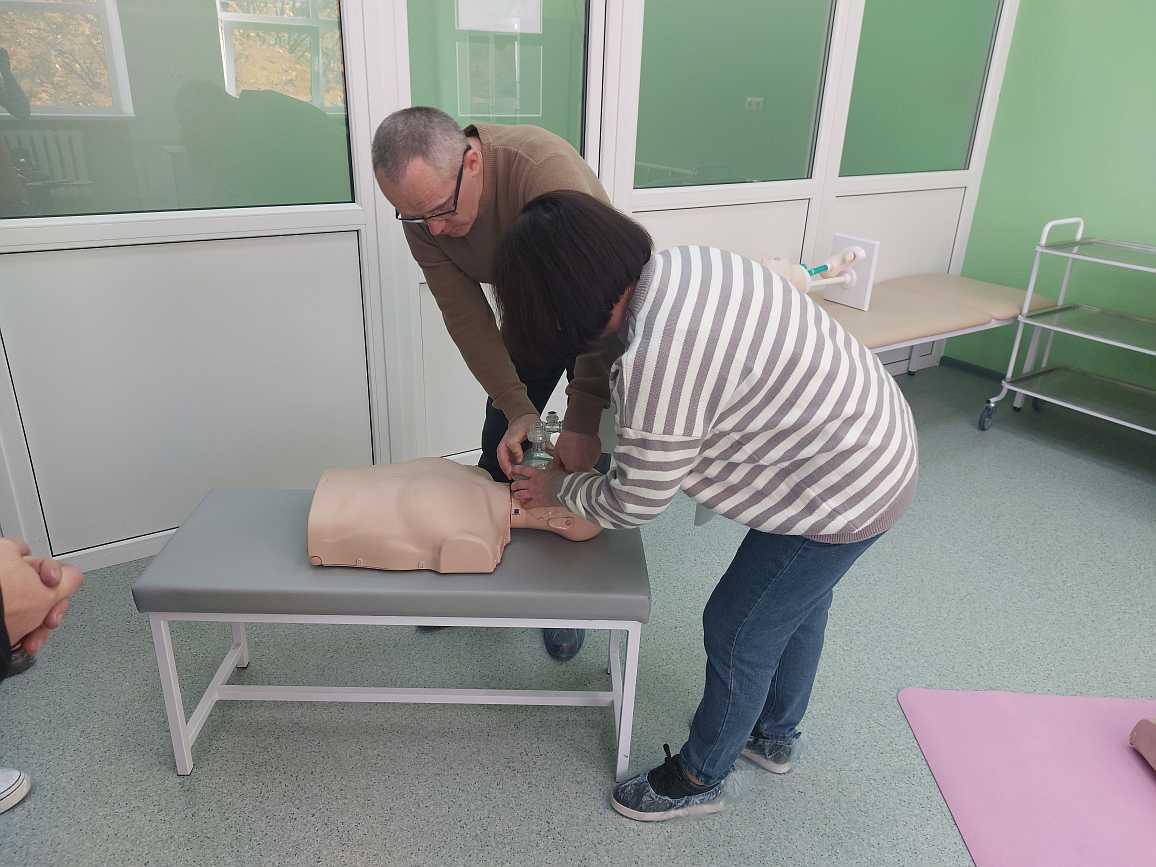 Тренинг по сердечно-легочной реанимации, по оказанию неотложной медицинской помощи при гипертоническом кризе, гиповолемическом и анафилактическом шоке.