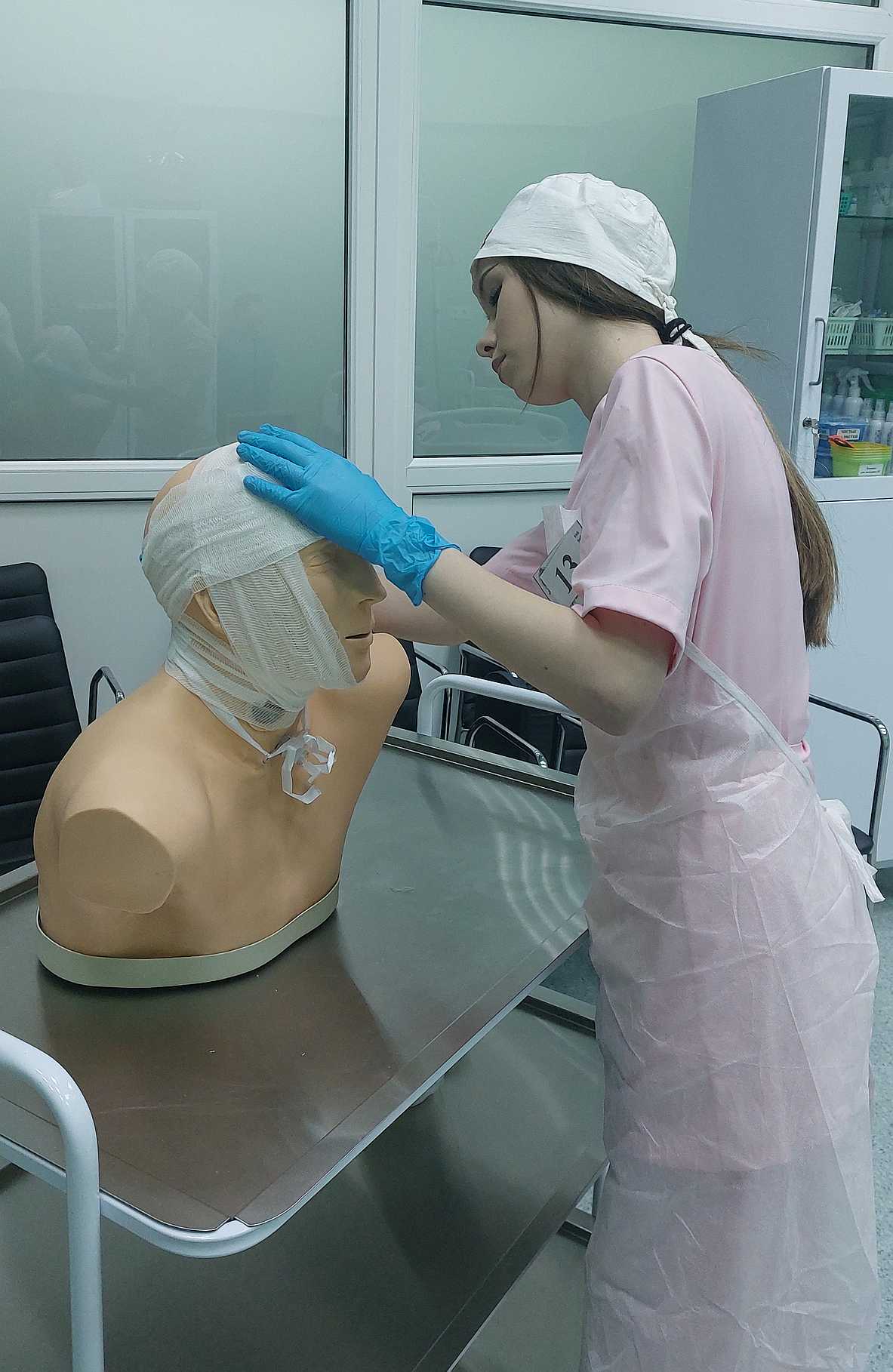 В модуле «Хирургия» учащиеся 3 курса отделения «Лечебное дело» продемонстрировали практические навыки оказания неотложной медицинской помощи при черепно-мозговых травмах.