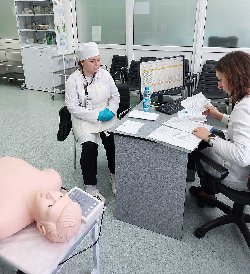 На базе лаборатории по отработке навыков проходит обучение специалистов со средним медицинским образованием навыкам оказания неотложной помощи пациентам с отработкой практических навыков