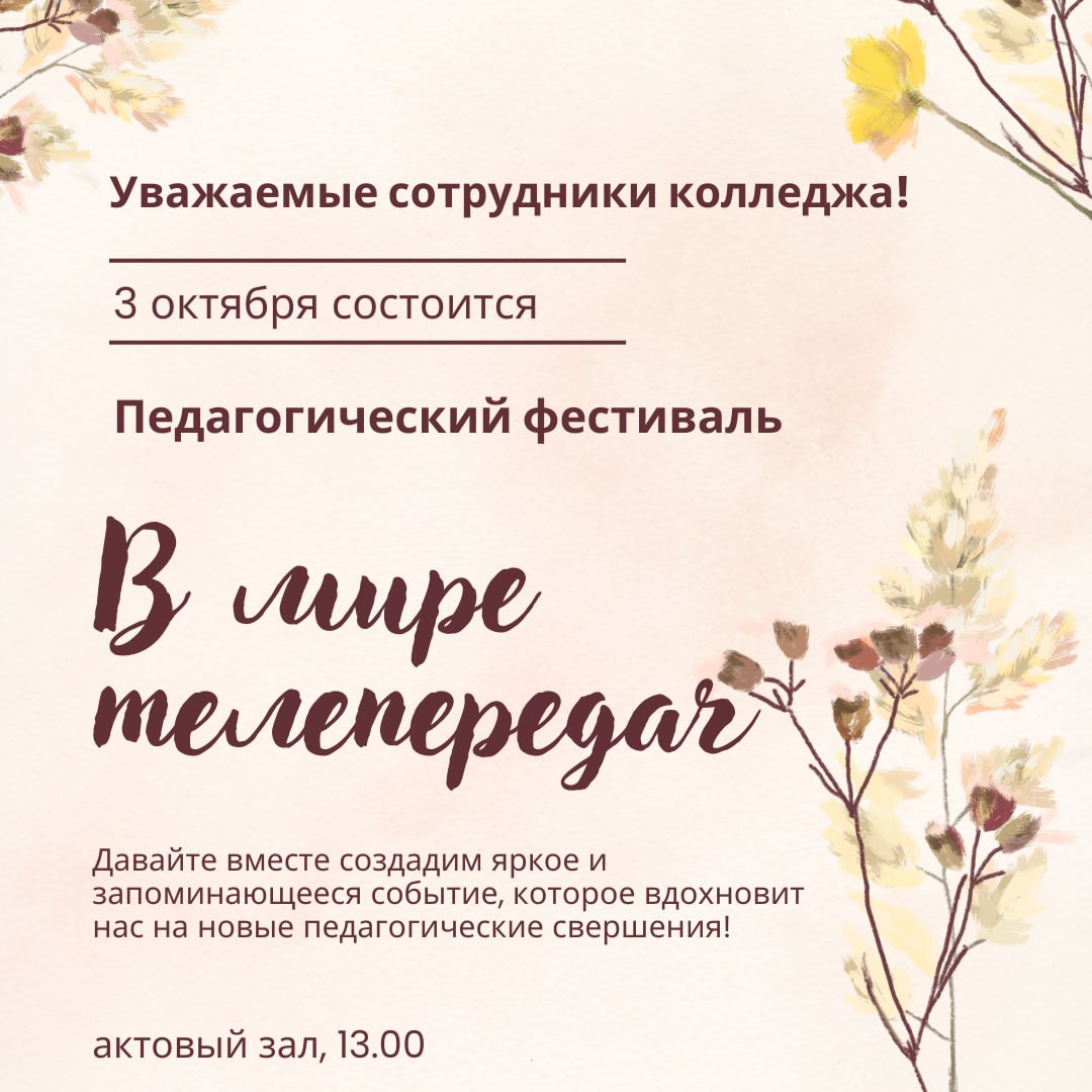 03.10.2025 в рамках приближающегося Дня учителя прошел ФЕСТИВАЛЬ ПЕДАГОГИЧЕСКОГО МАСТЕРСТВА «В МИРЕ ТЕЛЕПЕРЕДАЧ»